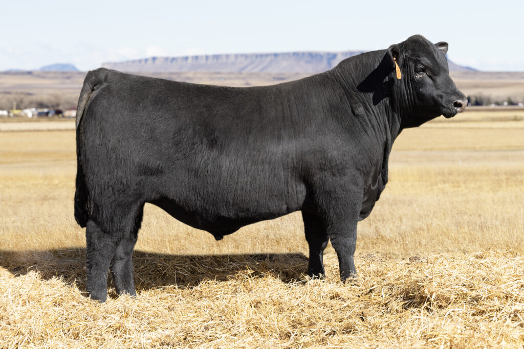 MLK Jameson 571 is out of a pathfinder dam with a WR of 5 @ 107 and a YR ratio of 4 @ 102. He has a WR of 107 and is in the top 10% in WW, W, F, B, C, and Milk. He is a moderate birth weight bull with great feet and has a low PAP EPD. This bull has over the top EPDs and the looks of a herd bull!